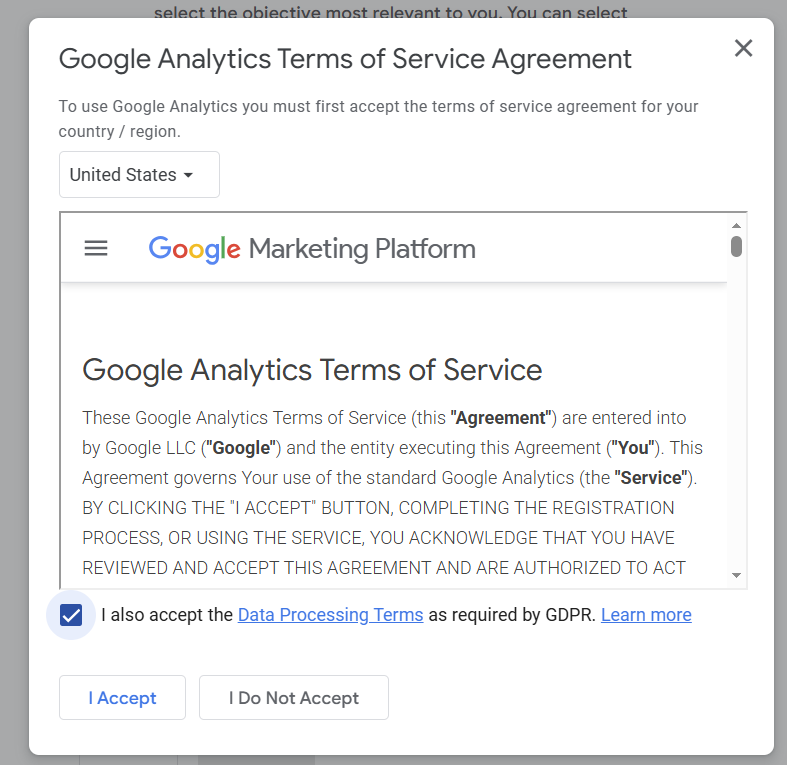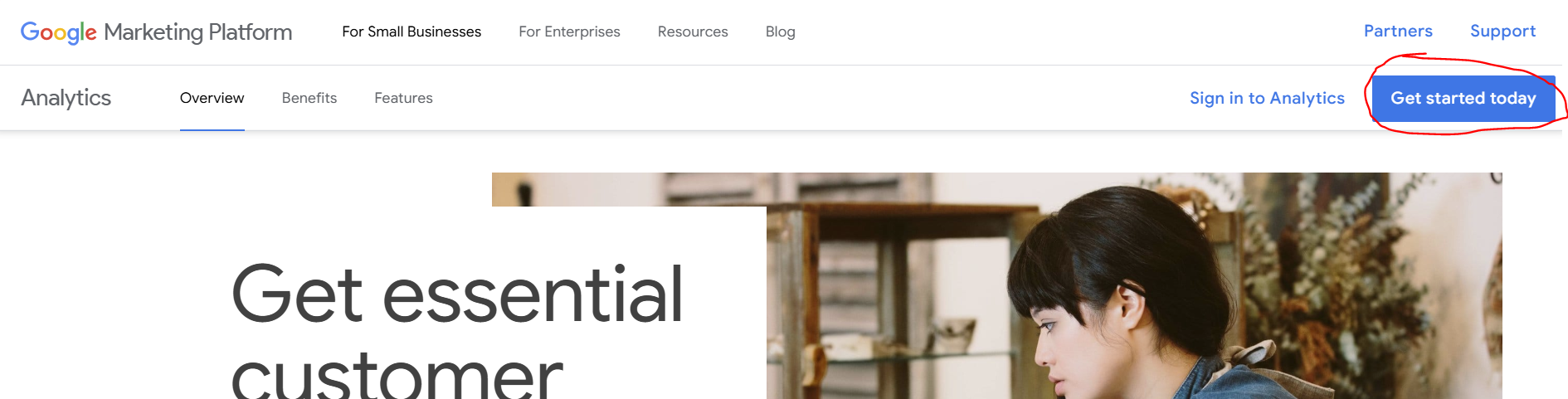 Ensure you are signed into the Gmail account that you want associated with your Google Analytics account and click > Get Started Today