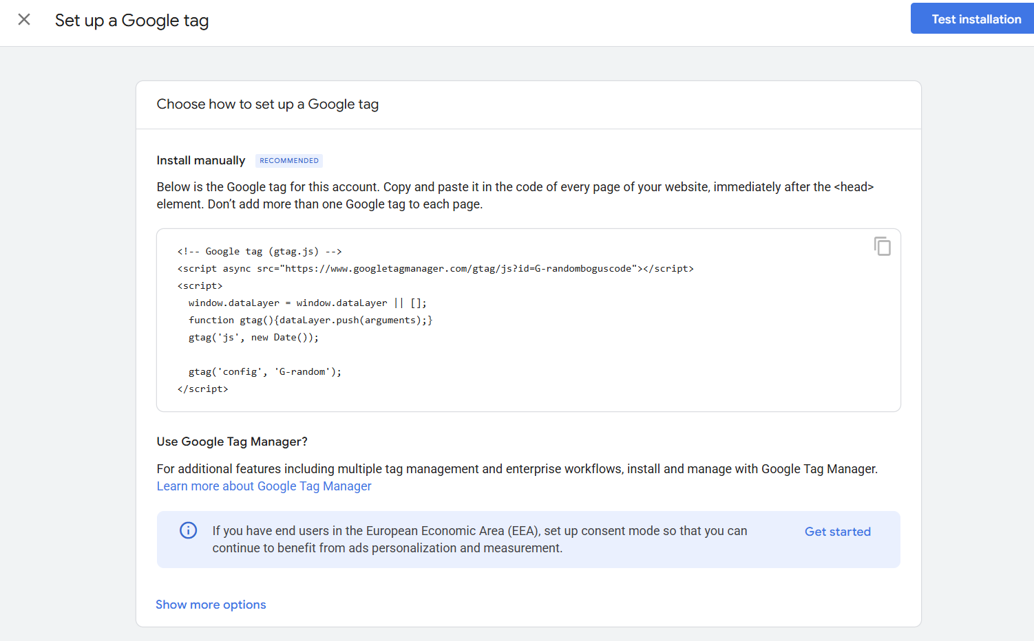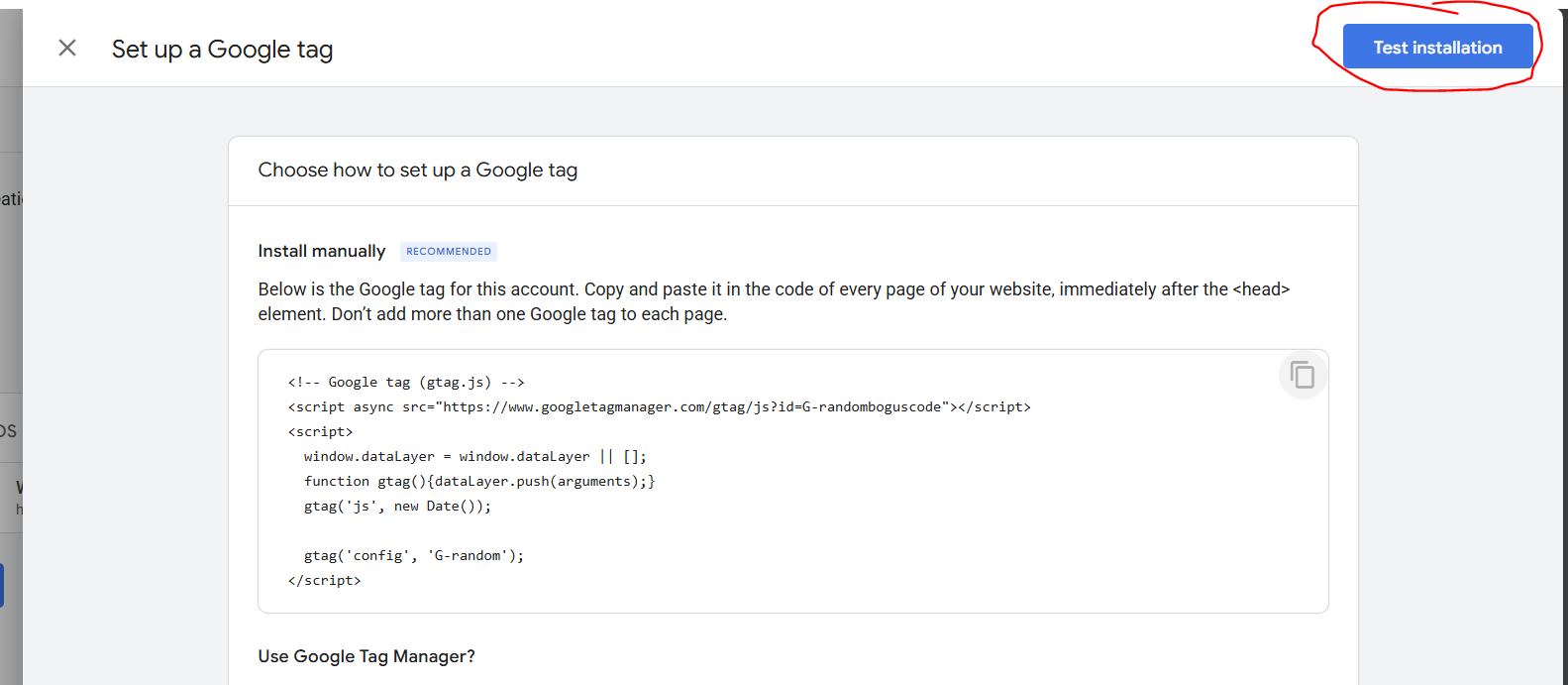 Next you will need to paste the google tag on your website manually > manually copy the code